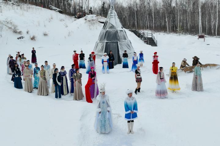 活动现场,带有民族特色和时尚元素的服饰,与冰天雪地中的莽莽林海相互交融,形成强烈的视觉冲击,尽显塔河秀美风光,为当地居民和游人带来一场视觉盛宴。