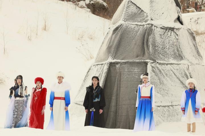 “古驿鄂乡,踏雪寻鹿”。在本次活动中,时装模特和当地的鄂伦春文艺工作者密切协作,结合鄂伦春“赞达仁”山歌曲调、传统乐器演奏、民族舞蹈、非遗传承等内容,通过四个篇章进行了鄂伦春文化服饰实景展演。